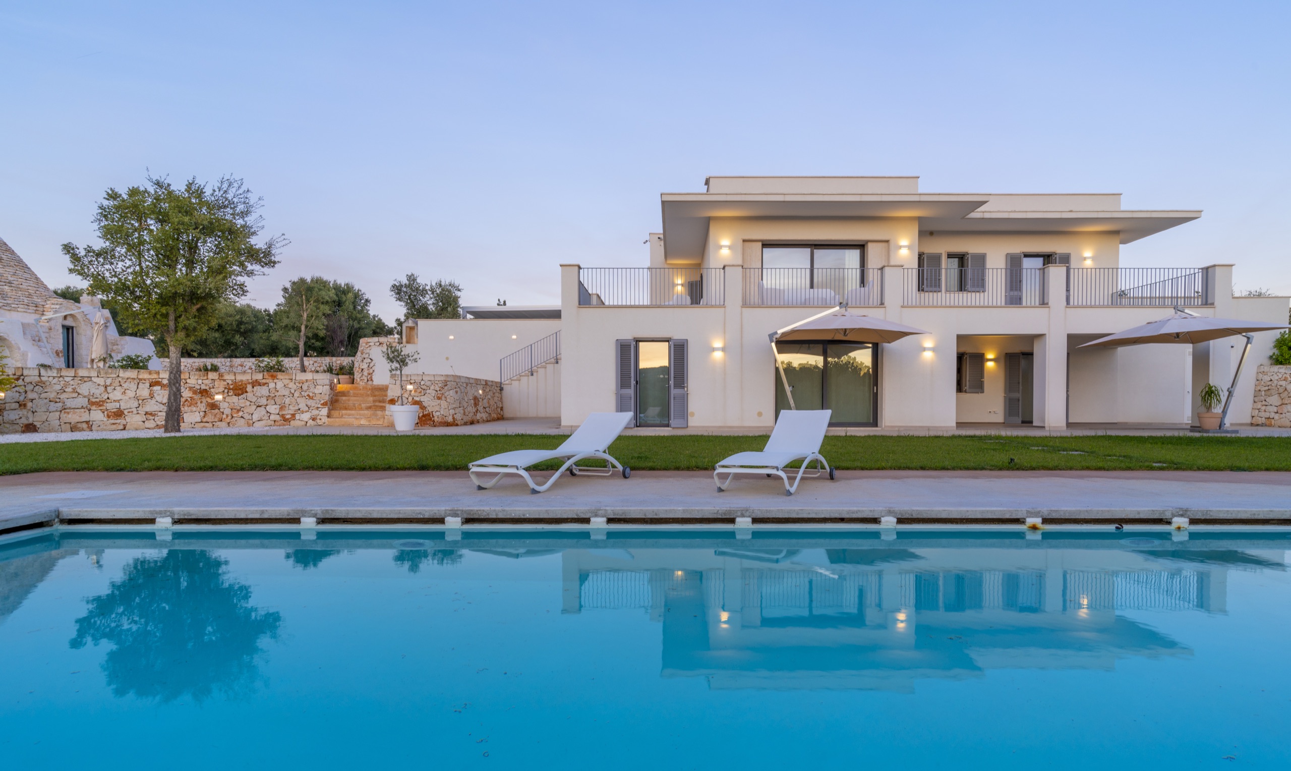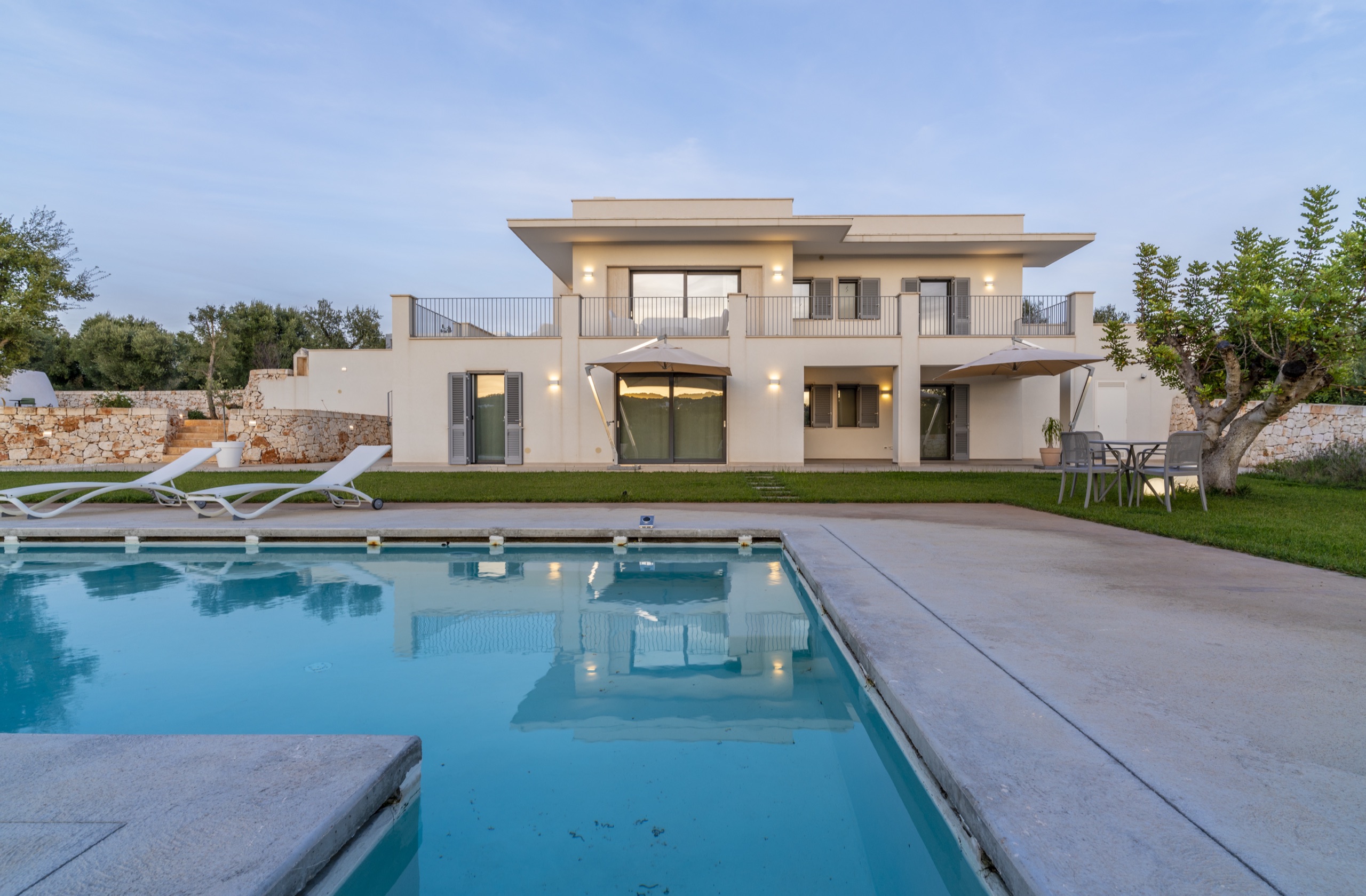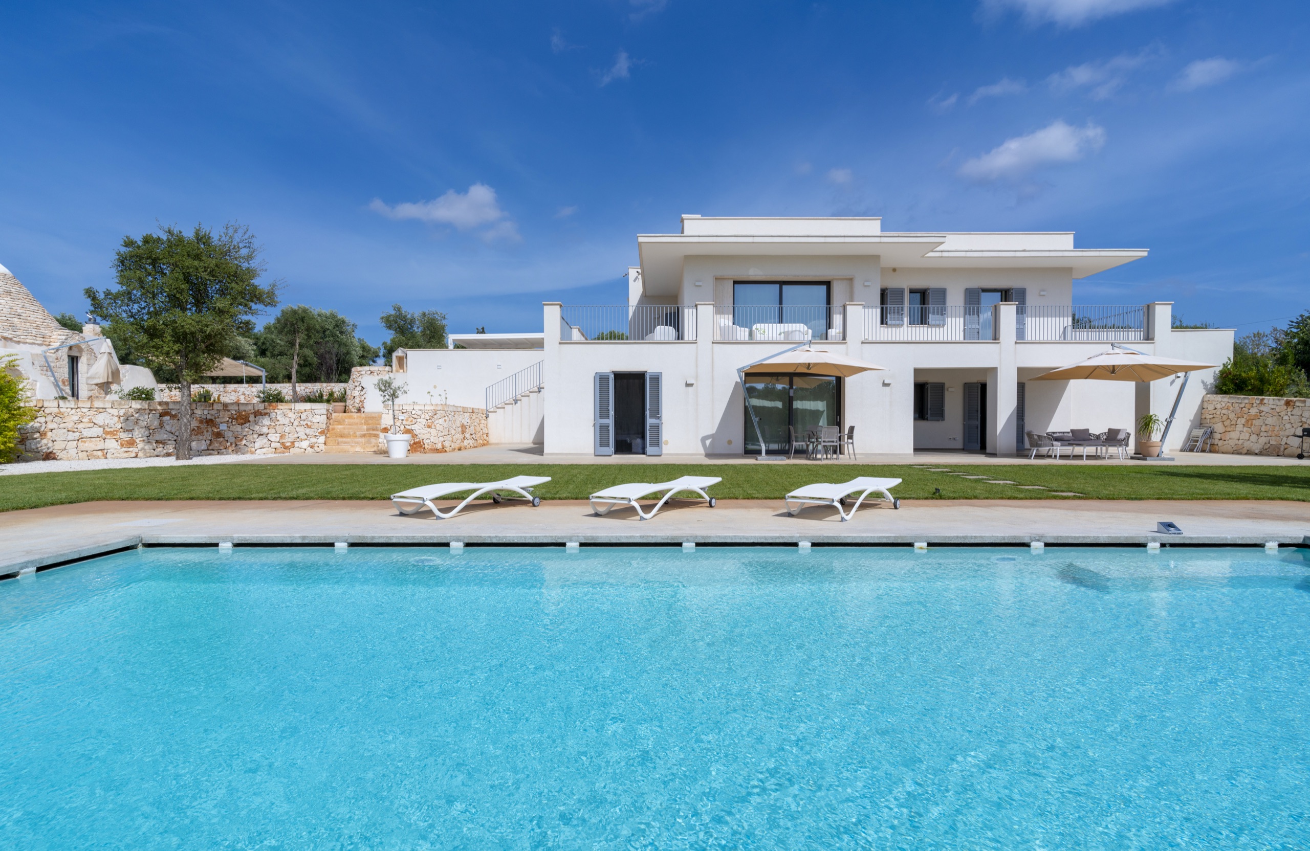 Una villa moderna, dall'accurato design, circondata da ulivi e piante tipiche della macchia mediterranea, per immergerti nella Puglia più autentica, quella della Valle d'Itria.