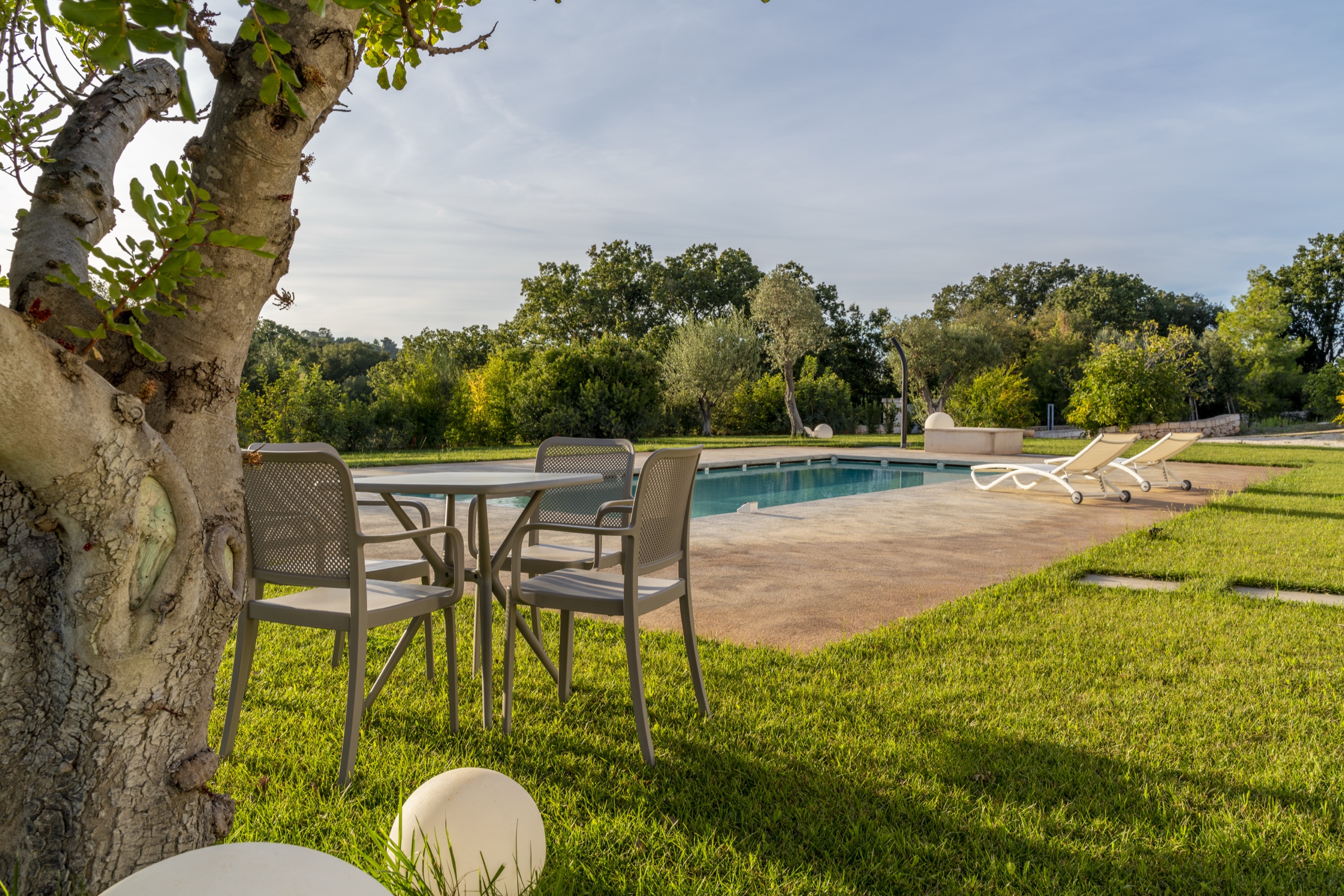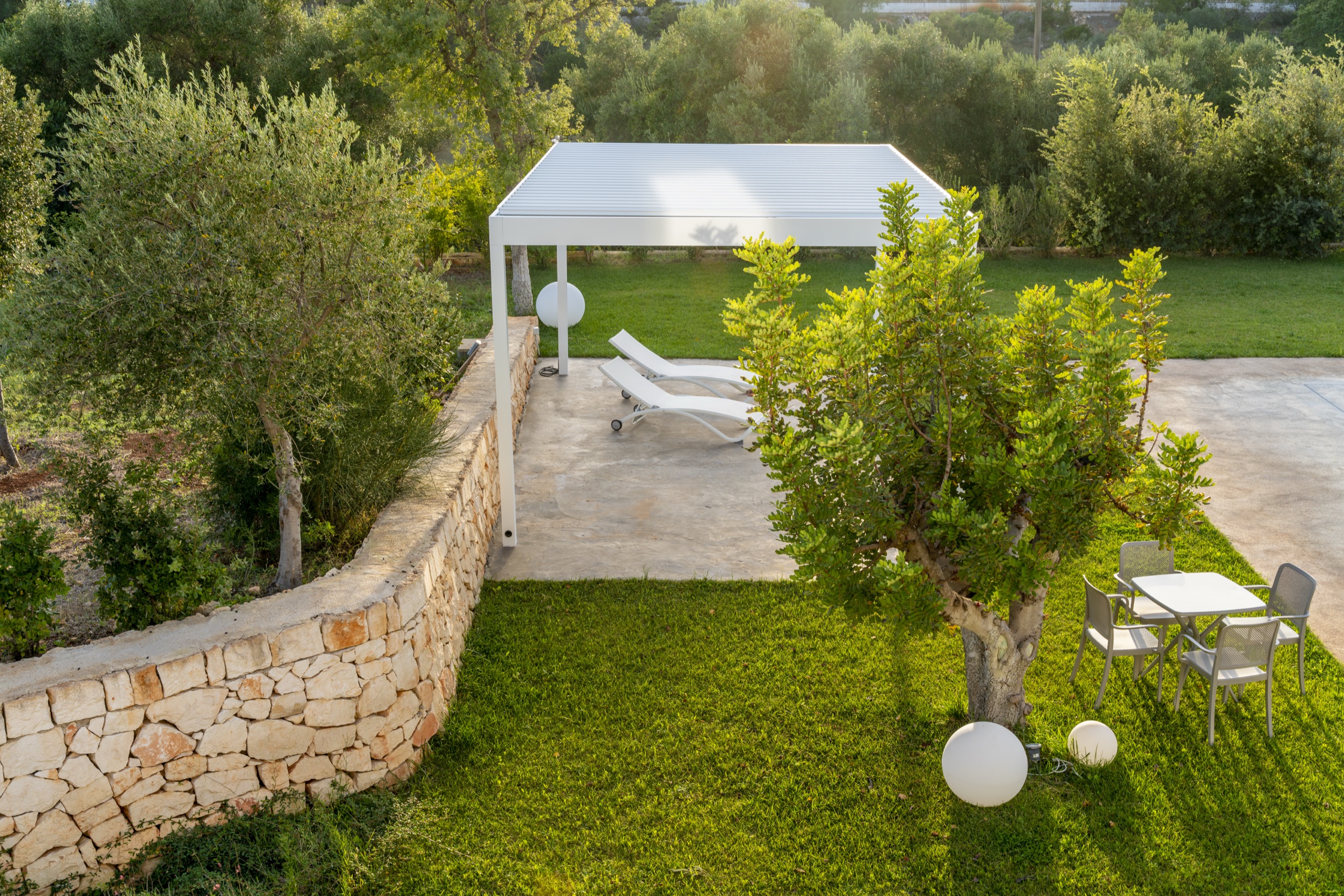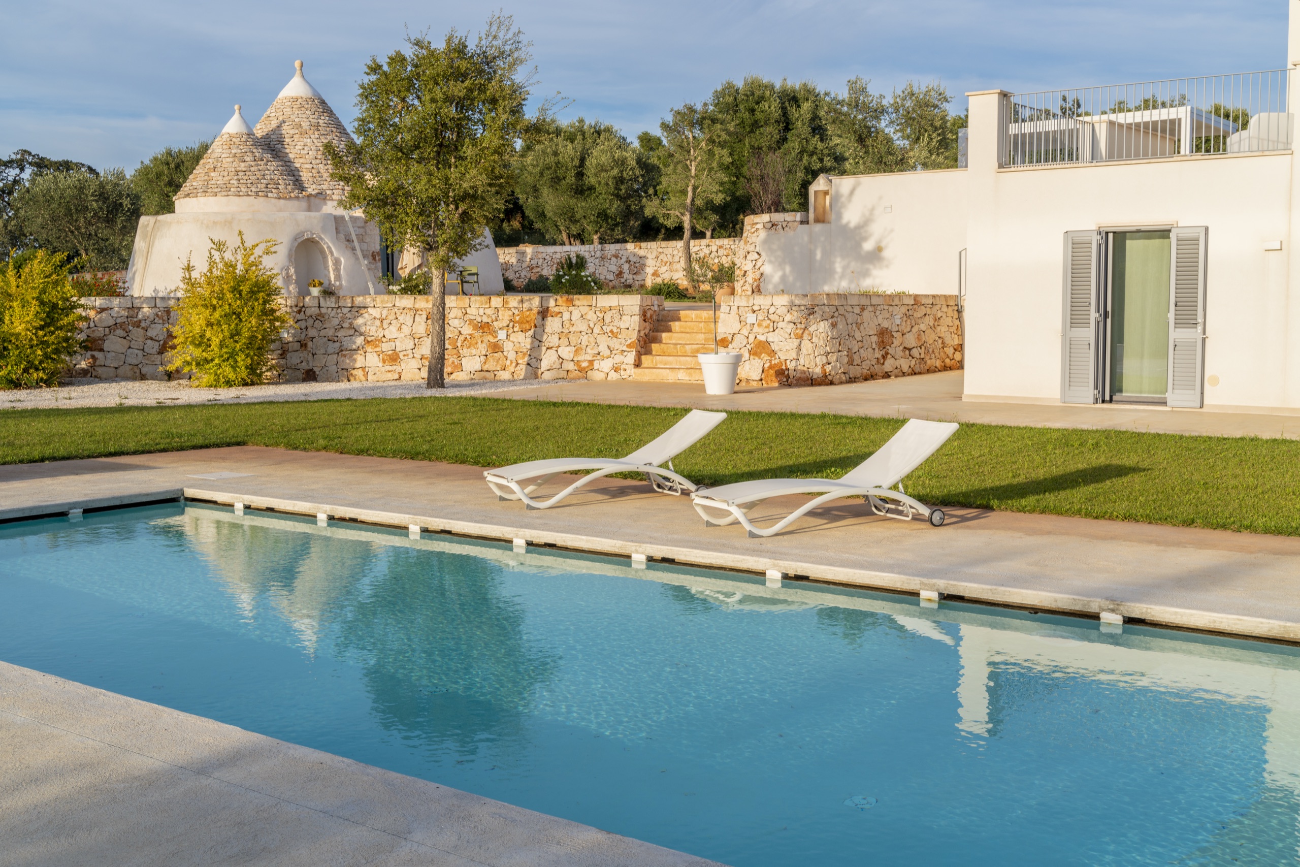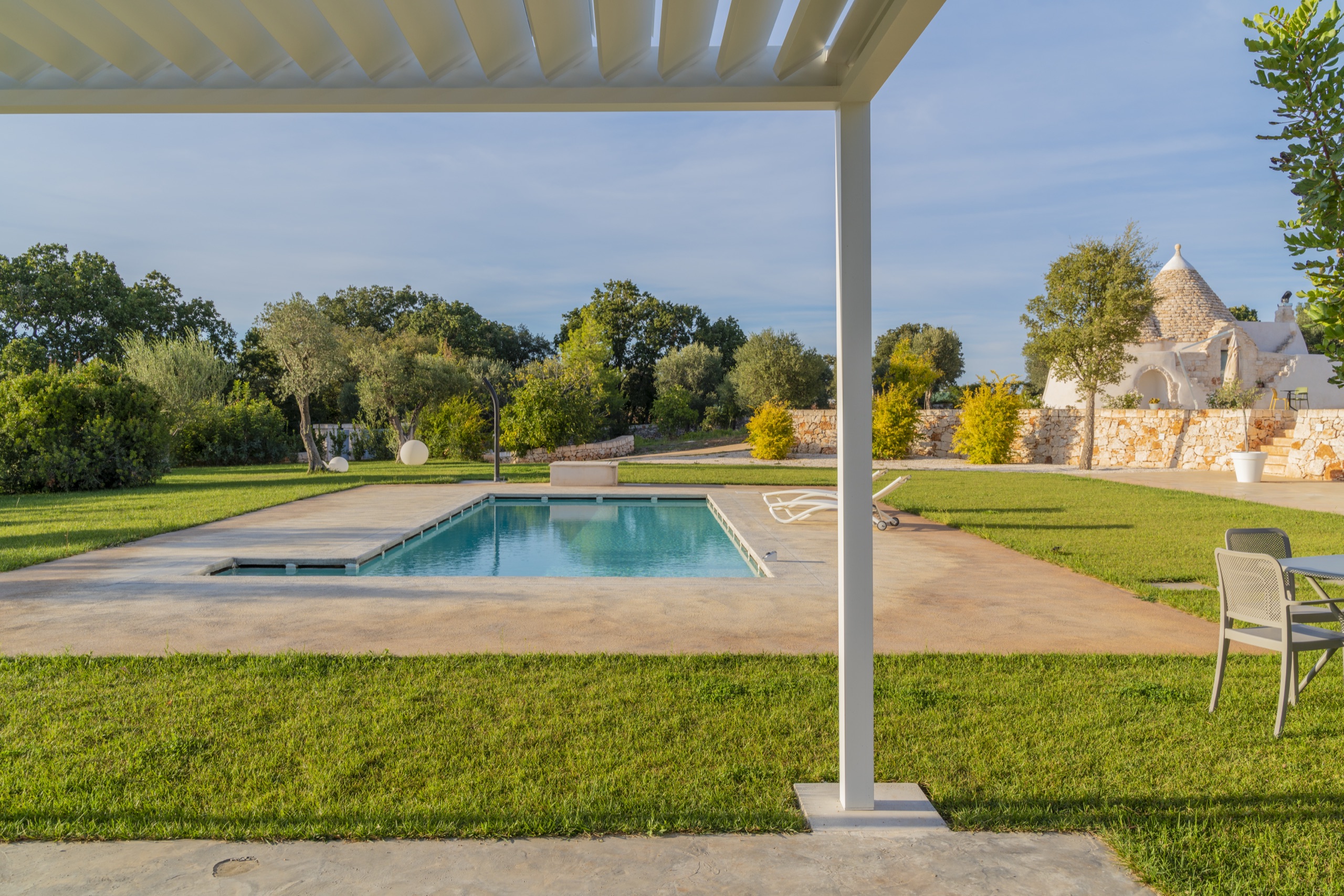 Una villa moderna, dall'accurato design, circondata da ulivi e piante tipiche della macchia mediterranea, per immergerti nella Puglia più autentica, quella della Valle d'Itria.